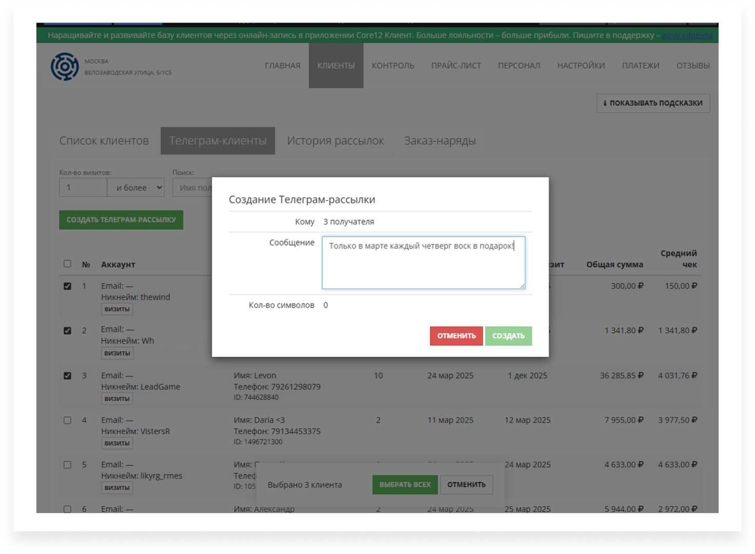 Теперь вы можете отправлять персональные предложения, сезонные акции и напоминания клиентам прямо в Telegram